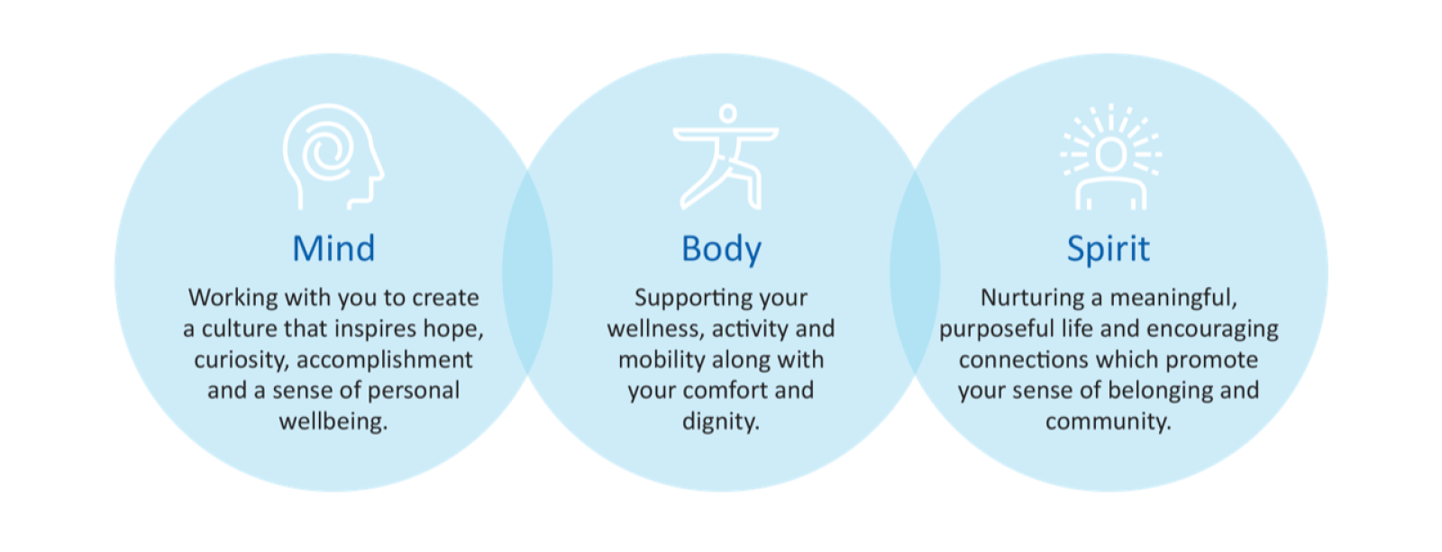 We will work with you to create a unique care plan considering the needs of your mind, body and spirit to support your optimal health and wellbeing. We'll also get to know you – learning about your likes and dislikes, interests and needs.