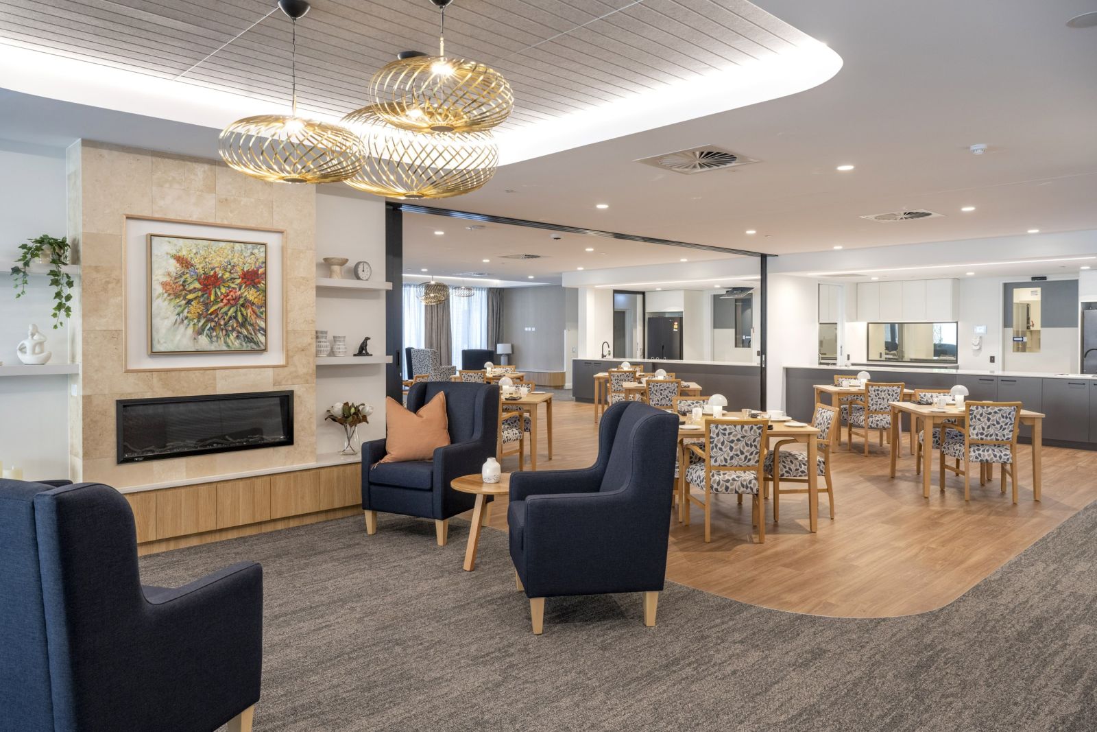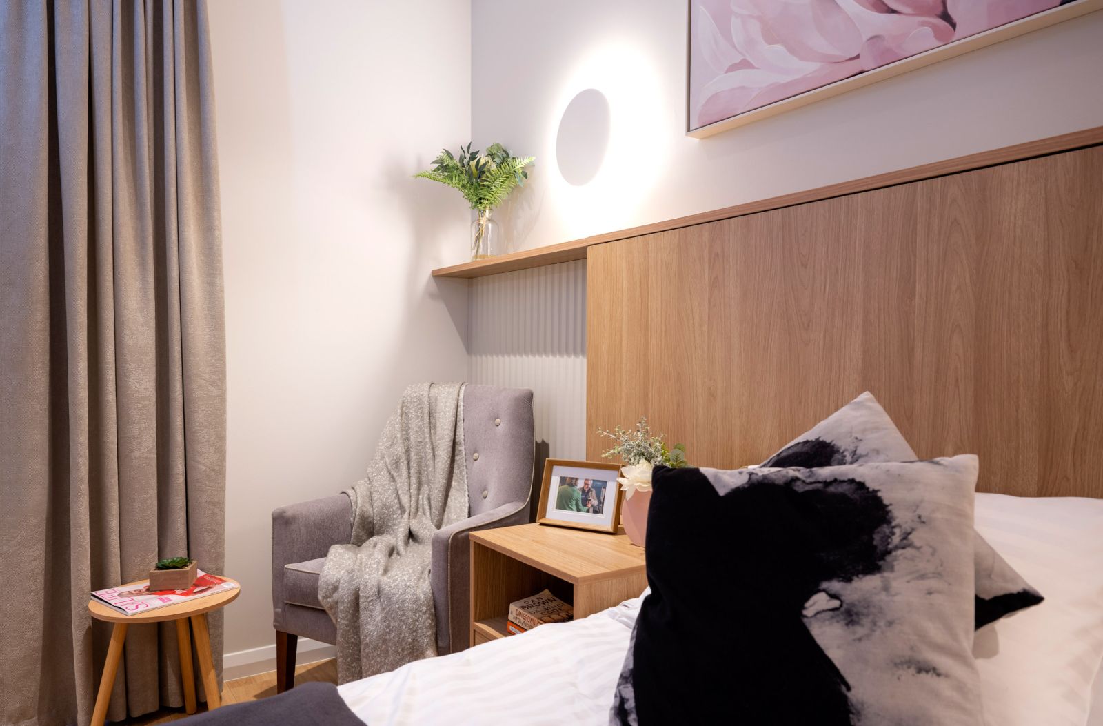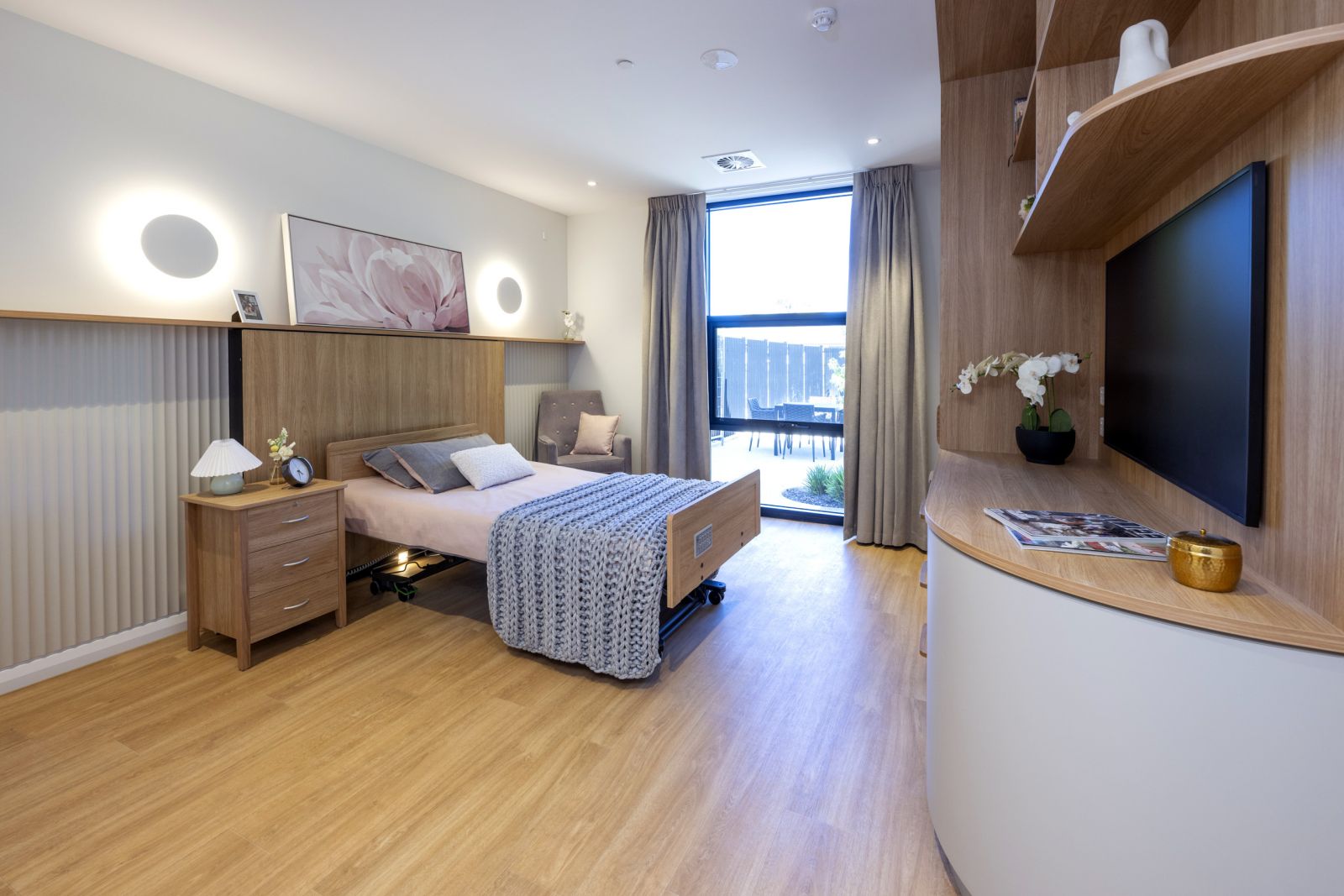 This purpose-built development embodies the best practices in aged care living standards. Every room offers a spacious 26 sqm layout, with state-of-the-art technology for safety and entertainment. Resident rooms are in small groups where living spaces are separated from communal areas. This commitment to ample living space ensures residents have room to relax, maintain their privacy, and create a sense of home.