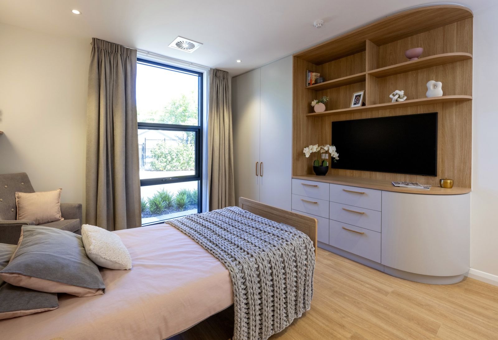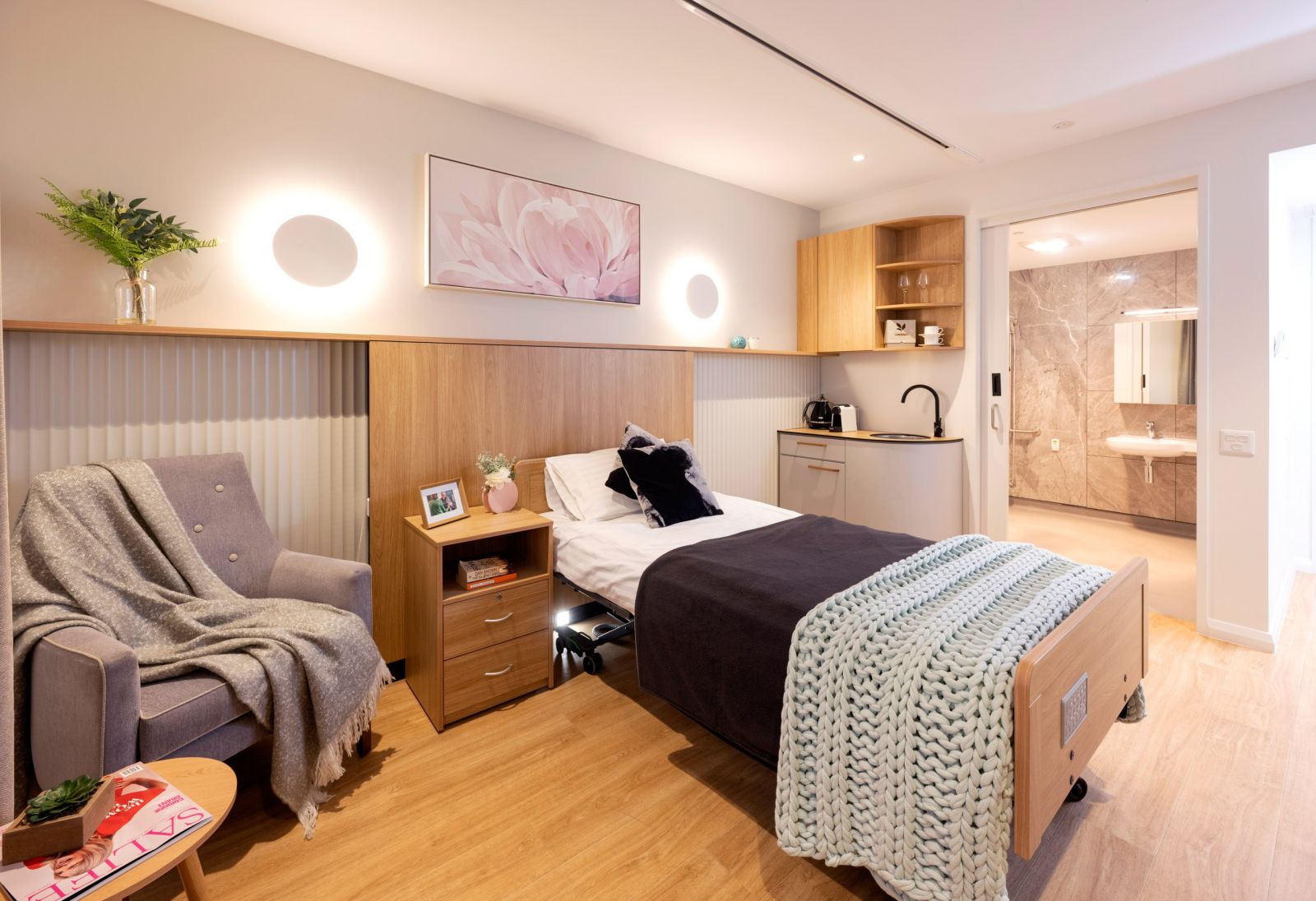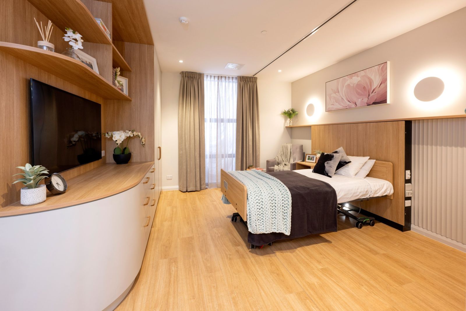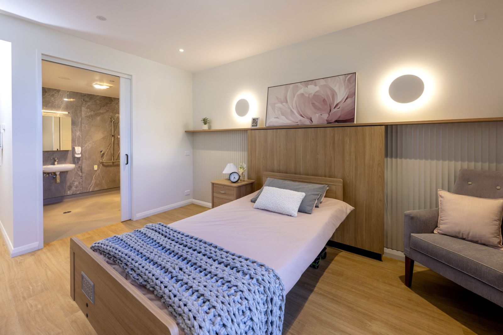 This purpose-built development embodies the best practices in aged care living standards. Every room offers a spacious 26 sqm layout, with state-of-the-art technology for safety and entertainment. Resident rooms are in small groups where living spaces are separated from communal areas. This commitment to ample living space ensures residents have room to relax, maintain their privacy, and create a sense of home.